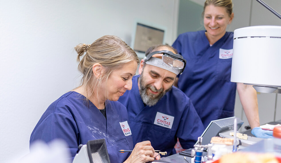 CIVITAS DENTAL ist eine starke Gemeinschaft lokal eigenständig agierender Dentallabore, die ihre Kräfte bündeln, um die Leistungsfähigkeit des einzelnen Labors zu erhöhen. Sie als Behandler genießen die Vorteile eines Partnerlabors mit persönlichem Ansprechpartner und die Sicherheit, dass unsere Experten unter dem Dach der CIVITAS DENTAL-Gemeinschaft über das passende Spezial-Knowhow für jede noch so komplexe Herausforderung verfügen.